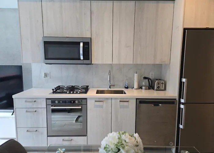 Self-catering options feature a full kitchen equipped with an electric kettle, a refrigerator, and an oven. The bar DROM Taberna is situated merely 5 minutes' walk from this apartment. The 1-room Stunning Open Layout Apartment Superb Location is located within 5 km distance of Billy Bishop Toronto City airport.